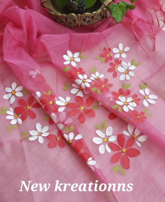 Hand painted duppata with permanent colors, cotton silk fabric. Dry Wash.